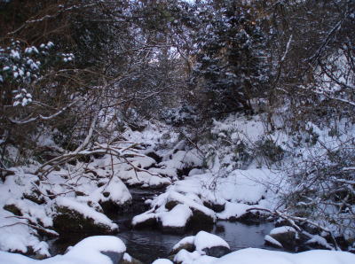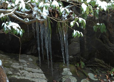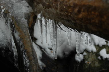 水無では結構雪が積もっていた。川沿いの壁ではツララが幾つも出来ている。